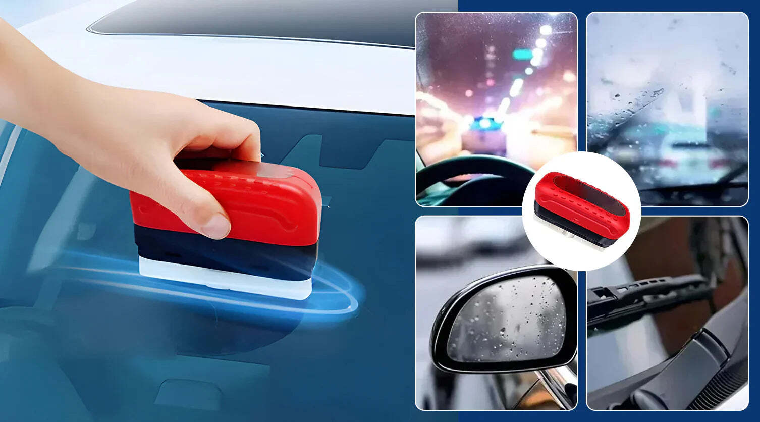 The Glass Cleaning Board features an advanced glass coating that makes windshields highly water-repellent. This ensures clearer, unobstructed visibility in rainy weather, improving driving safety and visibility.